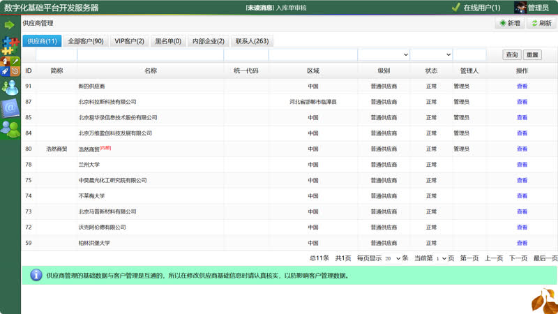 我门会提供整个企业数字化的导入服务。如果需要了解整个企业数字化的过程,可以联系我们进行详细的咨询。如果整个企业做全数字化改造,我们可以提供开发人员驻场服务。